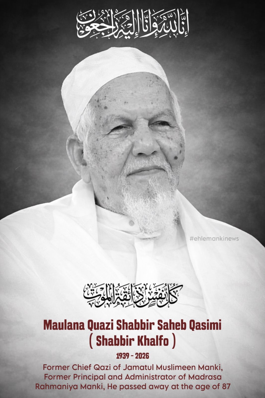 آج مورخۃ ۲۱ / اپریل علی الصبح بھٹکل کے مضافاتی قصبے منکی سے مولانا قاضی محمد شبیر صاحب کے انتقال کی خبر نے دل کو ملول کردیا۔ گزشتہ کافی عرصے سے پیرانہ سالی کے امراض نے انہیں صاحب فراش کردیا تھا، گذشتہ ۱۸ رمضان المبارک کو آپ کی عیادت کے لئے احباب کے ساتھ جانا ہوا تھا، جسم میں اٹھنے بیٹھنے کی سکت نہیں تھی، جسم ہڈیوں کا ایک ڈھانچہ بن گیا تھا، لیکن ہوش وحواس ابھی باقی تھے، ایک طویل عرصہ بعد انہوں نے ہمیں دیکھا تھا، پر بھی محسوس نہیں ہوا کہ ہمیں پہچاننے میں انہیں کوئی دشواری ہوئی ہو۔ آواز دھیمی تھی، جو آسانی سے سمجھ میں آجاتی تھی۔ شناسا چہروں کو دیکھ کر ان کی خوشی ومسرت کا احساس ہورہا تھا،اآپ نے اس دنیائے فانی کی (۸۴) بہارییں دیکھیں۔