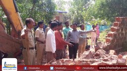 Bhatkal 23 October 2018: (Bhatkallys News Bureau) Bhatkal forest department on Monday demolished a compound wall which was allegedly constructed on a government land reserved for a government school, here in Heble Panchayath limits on October 22. Meanwhile the local residents termed the actio