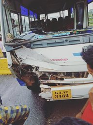 Bailur 14 August 2018: In a ghastly road accident three killed on the spot after the bike in which they were travelling collided with a local tempo at Bailur near Murudeshwar of Bhatkal Taluka here on 14 August 2018. The deceased have been identified has Abhishek Naik (21) resident of Kumta, Sand
