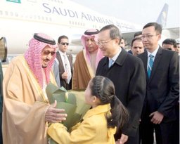 March 16,2017| SG Beijing — Custodian of the Two Holy Mosques King Salman arrived in China on Wednesday on an official visit. The King was received at Beijing International Airport by State Councilor Yang Jiechi. A girl presented a bouquet of roses to the King. King Salman will hold talks wit