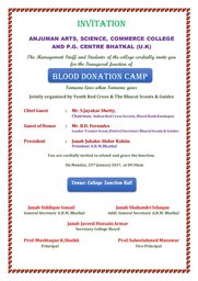 Bhatkallys News Service Bhatkal 22 January 2017: Anjuman Art, Science and Commerce college and PG Centre will be organizing an Blood donation camp in association with Youth Red Cross and Bharath Scout on Monday 23 January 2017 at the college function hall, which will is scheduled to begin at 9.30