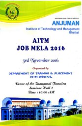 Bhatkallys News Service Bhatkal 02 oct 2016: Anjuman Institute of Technology and Management (AITM) is to organize a Job Mela which will bring many of a Multi-National Companies to the campus as recruiters. Market giants like Reliance Industries, Infosys, ICICI Bank, Jindal Steels, Eureka Forbe