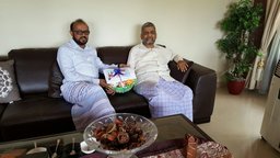 A delegation from Bhatkallys.com met with Abdul Rahman Siddiqi at his residence in Bhatkal. Represented by Shabandri Mohsin, Mohiddin Jilani Shabandri and Shabandri Mohammed Muaz, the delegation wished him a speedy recovery. Siddiqi, a director of Bhatkallys.com, expressed his gratitude and wishe