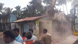 Karwar 27 August 2018: (Bhatkallys News Bureau) Following the orders of the district administration the officials of IRB Infrastructures on Sunday demolished about 29 shops here at NH-66 of Amadalli of Karwar. The operation that was conducted with the directions of Tahsildar Shridevi Bhat, destro