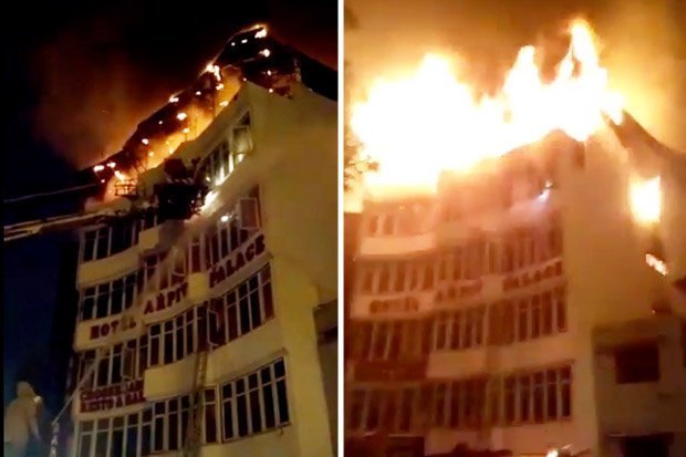 Thick smoke and huge flames could be seen emanating from the top floor of the 40-room hotel till around 7 am.