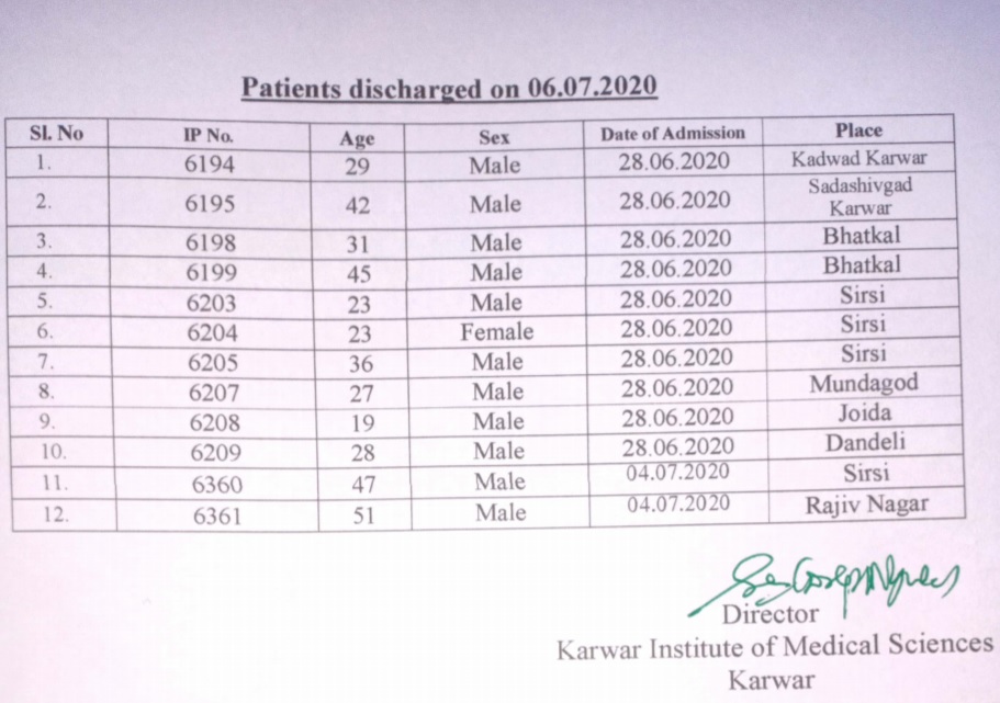 اس دوران اچھی خبر یہ ہے اتر کینرا میں مریضوں کی تعداد کے بڑھنے کے ساتھ ہی صحت یاب ہونے والے لوگوں کی تعداد بھی خاصی ہے۔ اطلاع کے مطابق کل کاروار کے کیمس سے بارہ مریض صحت یاب ہوکر گھر لوٹے ہیں جن میں بھٹکل کے دو مرد بھی شامل ہیں جوکہ 28 جون کو اسپتال میں بھرتی کیے گئے تھے۔