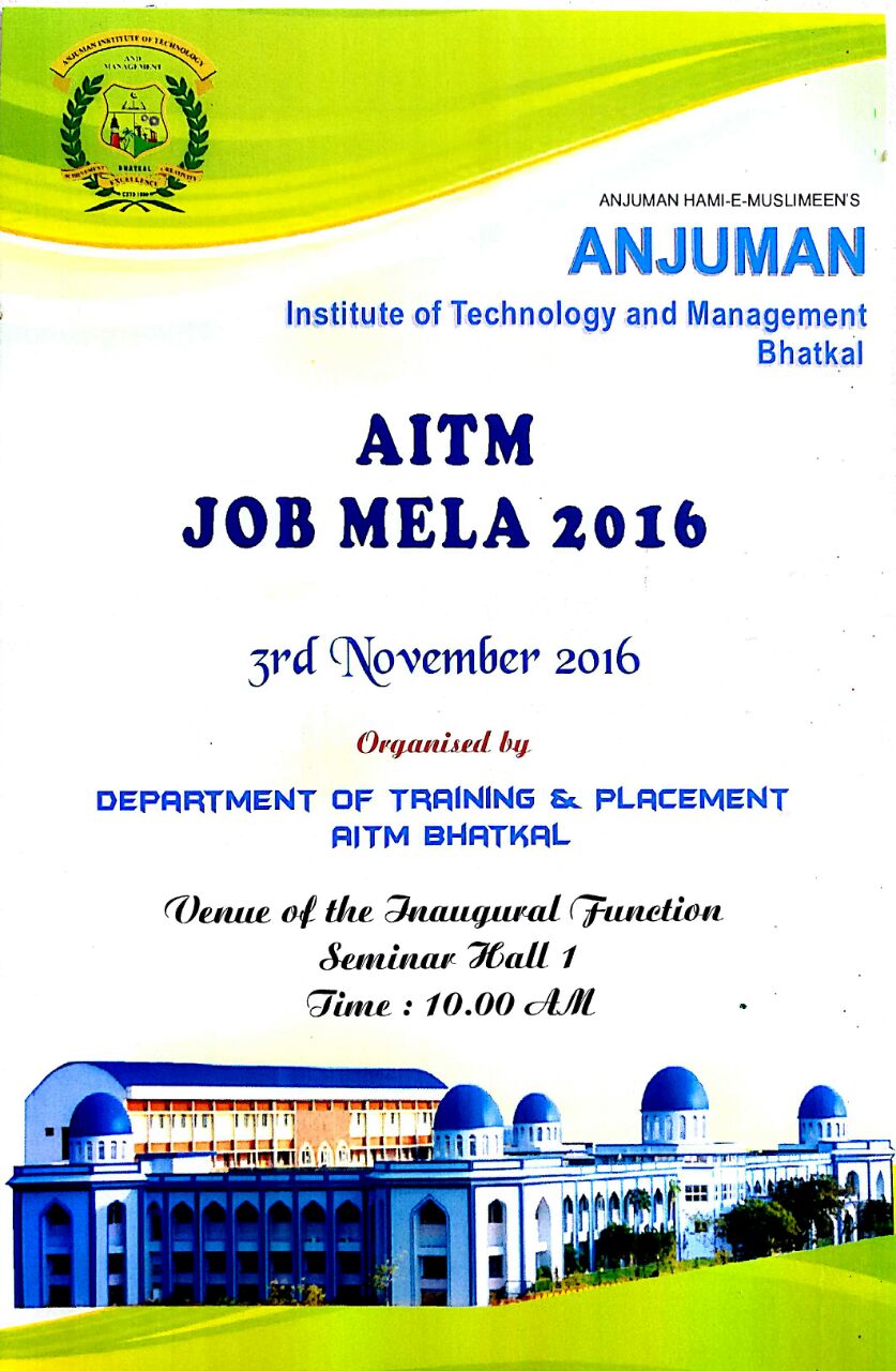 Bhatkal 02 oct 2016: Anjuman Institute of Technology and Management (AITM) is to organize a Job Mela which will bring many of a Multi-National Companies to the campus as recruiters.