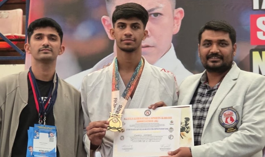 Bhatkal: 19 January,2026 (Bhatkallys News Bureau) Ismail Nameer, a Karate player from Bhatkal and son of Nisar Ahmed Ruknuddin, has won a gold medal at the 17th State-level Karate Championship and National Selection Trials, securing a place in the Karnataka state karate team.