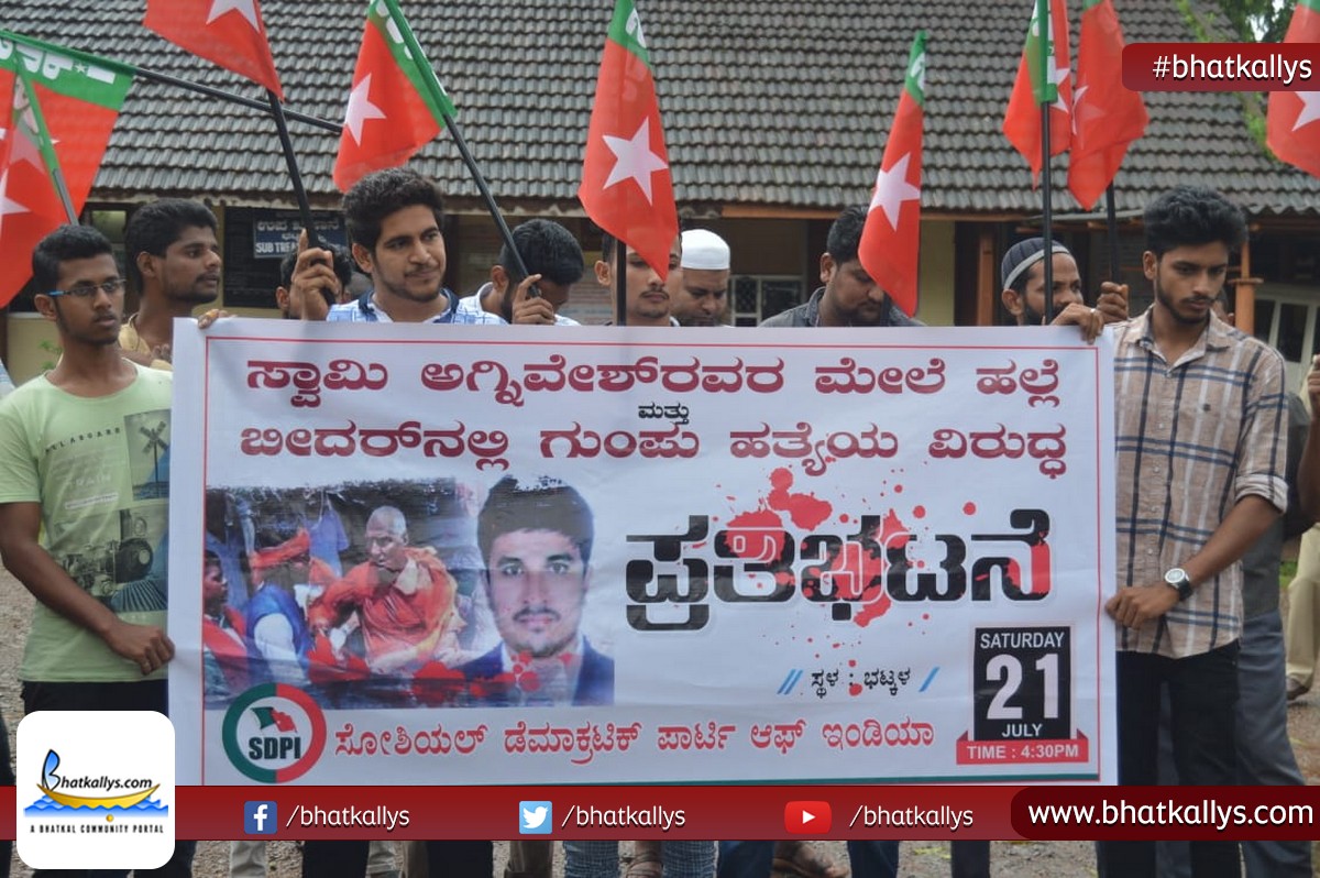 Bhatkal 22 July 2018: (Bhatkallys News Bureau) Social Democratic Party of India (SDPI) on Saturday submitted a memorandum to the Tashildar of Bhatkal at his office urging to initiate strict action against the Bharatiya Janata Yuva Morcha and ABVP members who allegedly attacked Social activist Swami Agnivesh at Pakur in Jharkhand for his "Anti-Hindu" stance.