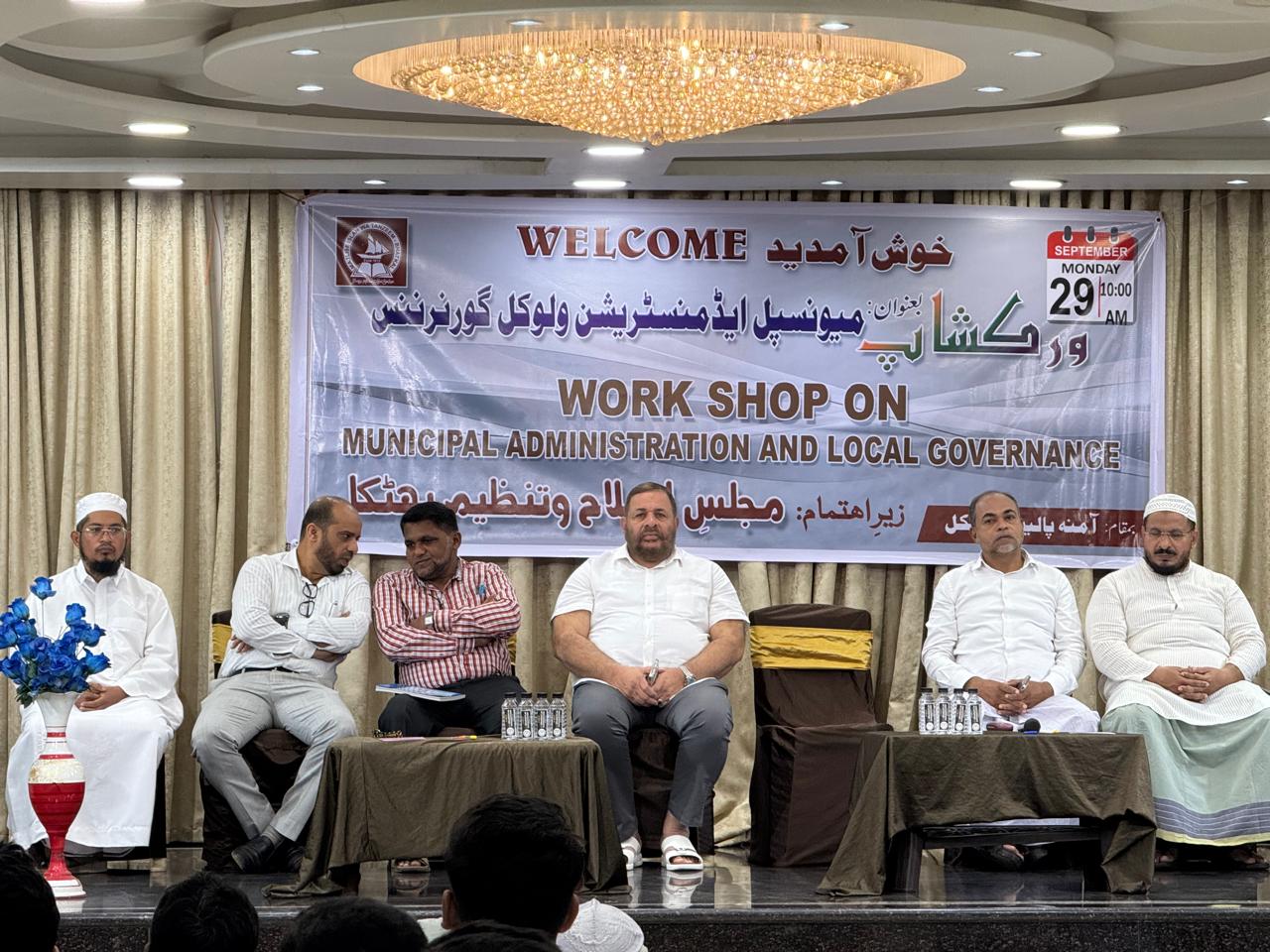 بھٹکل: 30 ستمبر، 2025 (بھٹکلیس نیوز بیورو) مجلس اصلاح و تنظیم بھٹکل کے سیاسی پینل کے زیر اہتمام پیر کو "میونسپل ایڈمنسٹریشن اور لوکل گورننس" کے موضوع پر ایک روزہ ورکشاپ کا انعقاد ہوا جس میں ماہرین اور سماجی شخصیات نے عوامی بیداری، نوجوانوں کی شمولیت اور عوامی نمائندوں کی ذمہ داریوں جیسے موضوعات پر اپنے خیالات کا اظہار کیا۔