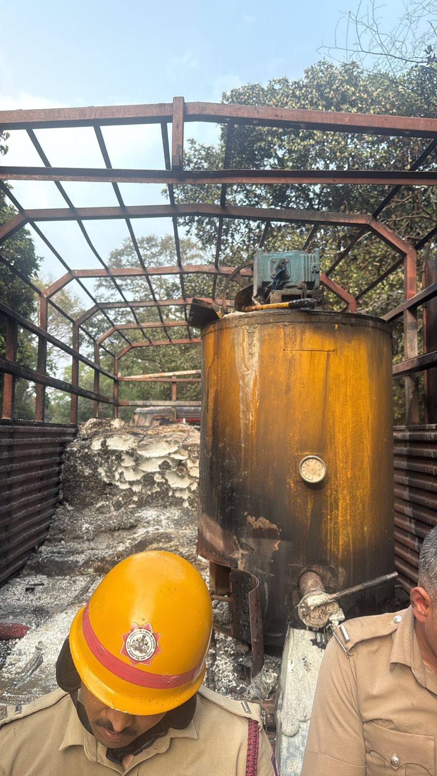یلاپور: 3 جنوری،2026 (بھٹکلیس نیوز بیورو) قومی شاہراہ آرابیل گھاٹ پر سفید لکیریں کھینچنے کے دوران بوائلر اور گیس سلنڈر میں دھماکہ ہو گیا جس کے نتیجے میں ایک لاری میں آگ لگ گئی لیکن خوش قسمتی سے اس واقعے میں کسی کو جانی نقصان نہیں پہنچا ہے اور ایک بڑا حادثہ ہوتے ہوتے ٹل گیا۔