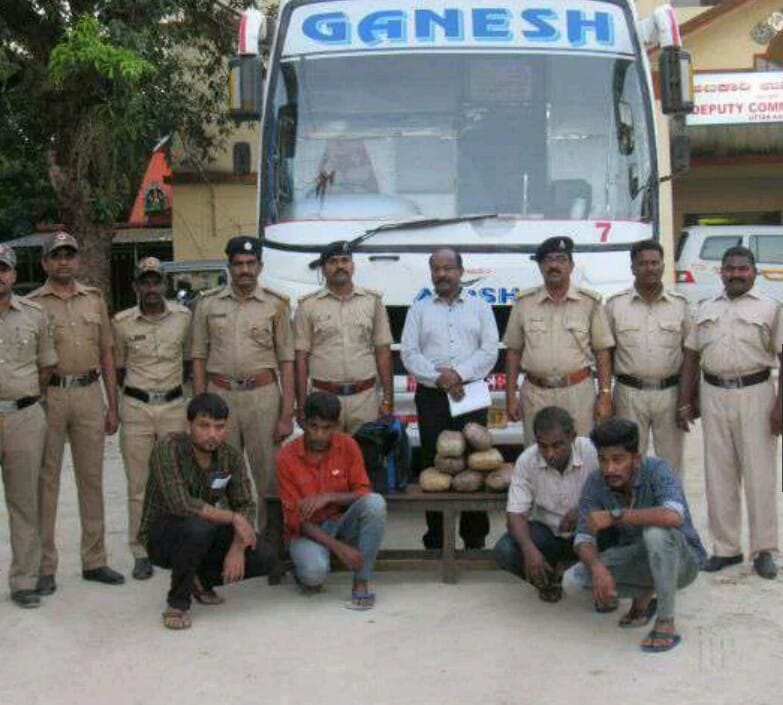 Karwar 17 September 2018: (Bhatkallys News Bureau) Excise officials on Sunday arrested four men including driver of the bus as they allegedly tried to smuggle Ganja weighing 7 kg in a private bus here at Majali check post of Karwar-Goa Border.