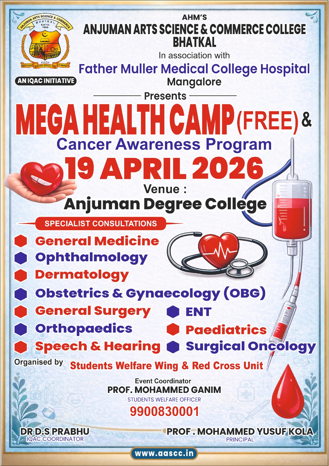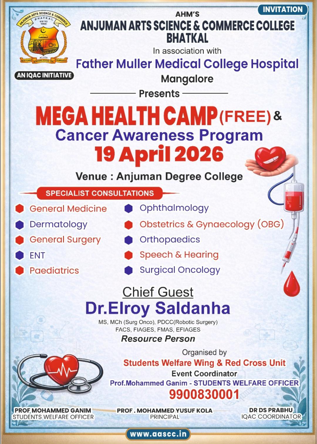 Free Mega Health Check-up Camp at Anjuman Degree College on April 19; Specialist Doctors to Offer Services