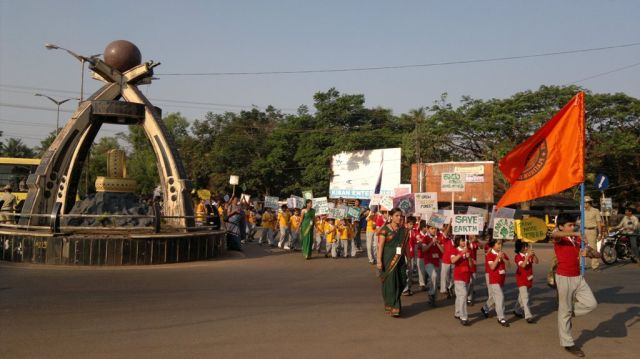 بھٹکل / (رضوان گنگاولی) بھٹکل ایجوکیشن ٹرسٹ چے ماتحت چالتلے ودھیانجلی پبلک اسکولا چے طلبہ طرفین عوامات ماحولیاتی آلودگی سلسلات بیداری پیدا کروچا سبب اسکولی ٹیچرا چی زیر نگرانی آز سکنات ایک ریلی چو انعقاد کرون گیلو وھتو ، ریلی چو آغاز ساگر روڈار واقع ودھیانجلی پبلک اسکولا ٹکو زاؤن وھتو انی ہی ریلی شمس الدین سرکل ، مین روڈ ، عیدگاہ روڈ انی بندر روڈا ویلان گزرتے واپس شمس الدین سرکلار یؤن اسکولات وسون اختتام پذیر زاؤن وھتی ، ریلی بتر اسکولی طلبہ اپلے ہاتھات ماحول چے تحفظ سبب زھاڑے رؤنچے انی زھاڑے ہاندوچا پوسون وروچے سلسلات اسلے بینر اپلے ہاتات گھینون وھتے ۔