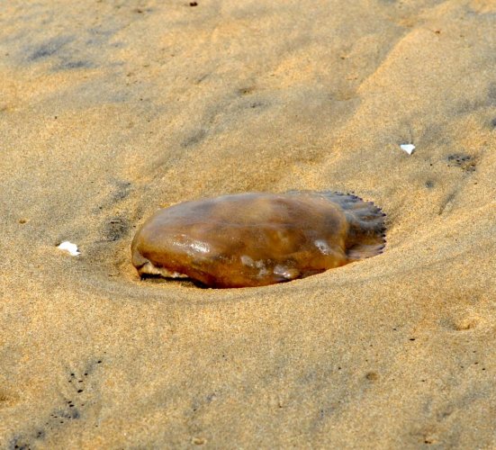 Karwar 13 October 2018: (Bhatkallys News Bureau) A sense of panic emerged on the Tagore beach of Karwar on Friday October 12, when the visitors noticed abundance of poisonous Jellyfish on the shores of the sea here.