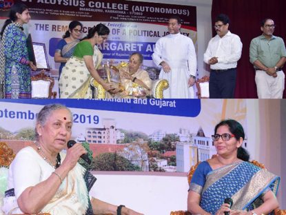 Mangaluru: “There have been a series of resignations from IAS cadre officers and judges, which poses a serious threat to our country,” said former governor of Gujarat, Rajasthan, and Uttarakhand, Margaret Alva speaking on the issue of ‘An interface on the reminiscence of a political journey’ here at St Aloysius College on Wednesday, September 11.