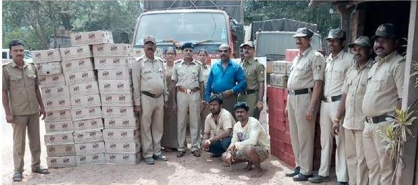 Karwar 12 October 2018: (Bhatkallys News Bureau) Karwar Excise Officials on Wednesday late night seized a truck carrying illegal alcohol worth Rs.12 lac here at Anmod check post of Karwar and arrested two smugglers.