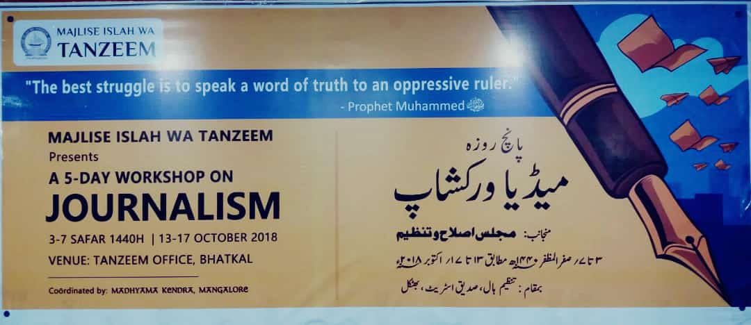 Bhatkal 12 October 2018: (Bhatkallys News Bureau) The much anticipated five days journalism workshop organised by local socio-political organisation Majlis-e-Islah wa Tanzeem Bhatkal will kick start on Saturday at the Tanzeem office with a formal inaugural ceremony at 9.00 am here in the presence of both the Qazis of Bhatkal.