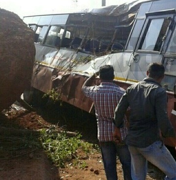 Two passengers travelling in the bus suffered minor injuries in this incident that occurred at around 9 am on Friday. The injured were identified as Gajanan Ramdas Naik and Sheila Shetty.