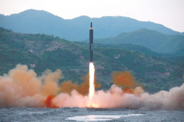 KCNA said the new rocket was a “perfect weapon” which was “capable of carrying a large-size heavy nuclear warhead.”
