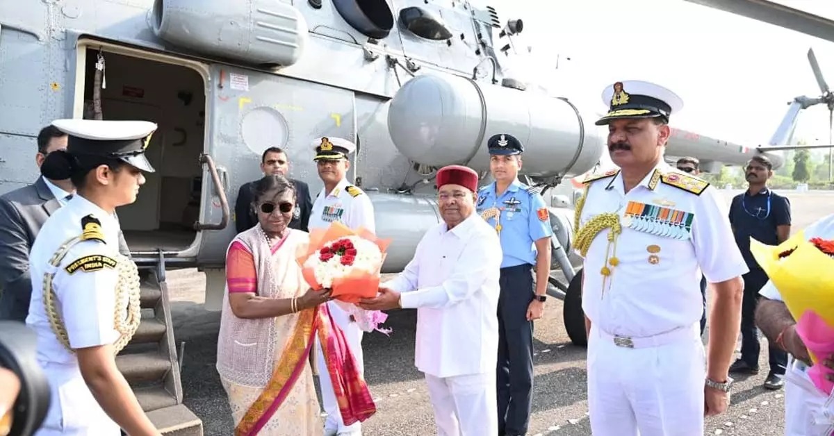 Karwar: 28 December,2025 (Bhatkallys News Bureau) President Droupadi Murmu arrived at the Kadamba Naval Base in Karwar, where she was received by the Governor and state ministers.