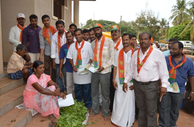 بھٹکل / (رضوان گنگاولی) بھٹکلے ایتوار دیسا لاگتلی سنڈے مارکیٹیت جے کھیں عوام ترکاری فل مھاؤرے وغیرہ گھینتے نظر ائیلے تنگا کچ ہیں عوامی مجموعہ چو فائدہ اوخلتے انتخابی امیدوار اپلی اشتہاری مہم کرتے کوں دیخو پڑلے ، ہیں موقعار بی جے پی چے امیدوار گوند نائک انی جنادل (سیکولر) چے امیدوار جناب عنایت اللہ شابندری صاحب اپلے حامیا سرین گھینون ہر ایکلا کڑے ملتے تینکاک پمفلٹ وغیرہ دیؤن وھتے ۔