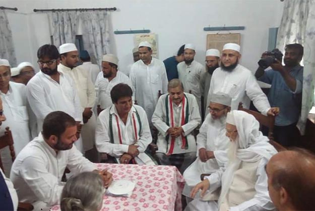 Lucknow: Congress Vice-President Rahul Gandhi along with senior party leaders on Friday visited Nadwat-ul- Ulema and held a meeting with rector of the world renowned Muslim seminary and President of the All India Muslim Personal Law Board (AIMPLB) Syed Rabey Hasan Nadvi.