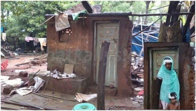 Yesterday, havoc was wreaked in a house at Talgeri area in Kokti Nagar when a family consisting of mother Mehrunnisa (36) and her two small kids, Saira (6) and Simran (10) was sleeping. Mehrunnisa constructed this house after toiling as a domestic servant so that they can have a roof on top of them and thus protect their honour. A violent storm with accompanying winds destroyed her house yesterday, trapping them all, under the rubble. Luck favoured them as they escaped with minor injuries and are now being treated in Bhatkal Government Hospital but their little home was completely destroyed.