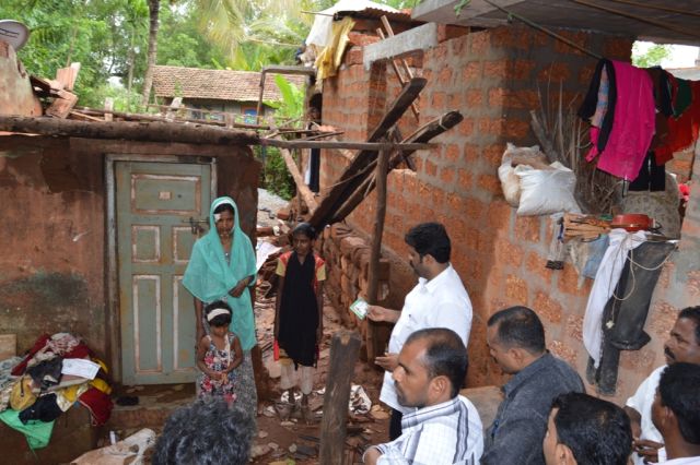 بھٹکل / (رضوان گنگاولی) دون دیسا فوڑے بھٹکلے زبردست پاؤس پڑوچان کوکتی نگر بتر واقع ایک غریب گھرانہ چو بھلی وڑلو نقصان زاؤن وھتو ۔ ہیجے مگ ٹکون ہنگا سرکاری افسران چی آمد چو سلسلہ جاری اشے انی حکومتے طرفین ہینکاک امداد دیؤنچی یقین دہانی کرون وتے اشے ۔ لیکن فوری طورار ہینکاک ماتو نکؤنچا سبب آسرا ناتون رہاؤنچان آز ہنگا رکن اسمبلی مسٹر منکال ویدیا پاؤن وھتے انی ہیں ٹوٹون پڑلے گھرا چو جائزہ گھینتے اپلے ذاتی صرفہ ٹکون رقم دیؤن ہیجی امداد کرون وھتے ۔ ہیں موقعار ہینچے سرین کانگریسی کارکن جناب عبدالرحیم شیخ و دیگر حضرات موجود وھتے ۔