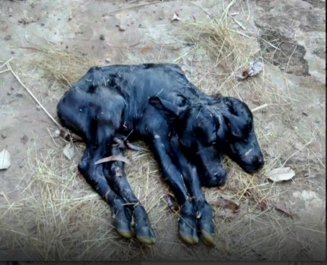 The calf had two conjoined heads, four eyes, two ears and two mouths. The calf suffered from diprosopus or craniofacial duplication, resulting in shared features. It is rare for such creatures to survive more than a few hours after birth because their internal organs are often deformed.However, Assistant Director of Taluk Animal Husbandry Department Dr. Nandankumar Pai told that the mother of the calf is in healthy state.