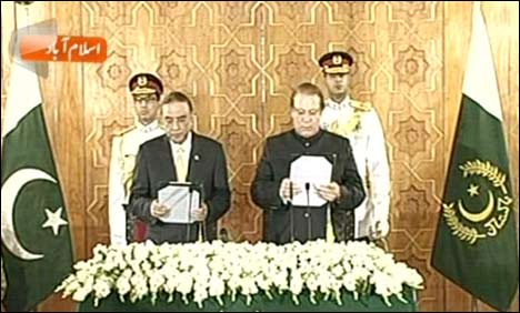 پاکستان کے نو منتخب وزیراعظم میاں محمد نواز شریف نے اسلام آباد میں اپنے عہدے کا حلف اٹھا لیا ہے۔