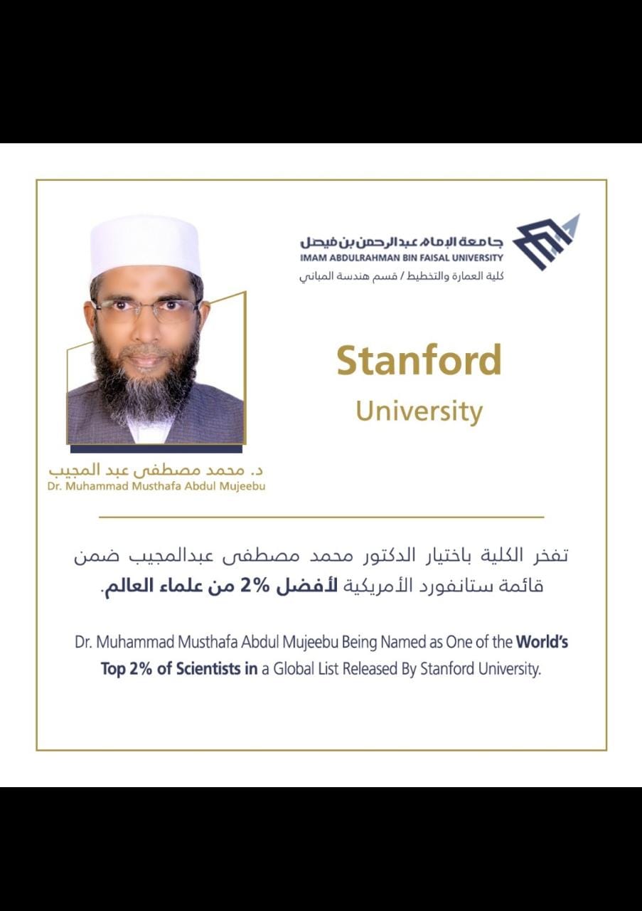 جدہ: 7 دسمبر،20 (بھٹکلیس نیوز بیورو) سعودی عربیہ کی مؤقر یونیورسٹی جامعہ الامام عبدالرحمان ابن فیصل دمام نے اخباری بیان جاری کیا ہے جس کے مطابق مذکورہ یونیورسٹی کے جملہ 14 اساتذہ کو امریکہ میں واقع دنیا کی معروف ترین اسٹانفورڈ یونیورسٹی نے اپنے سالانہ جاری ہونے والے بین الاقوامی سطح پر معروف 2 فی صد عظیم سائنسدانوں میں شامل کیا ہے جس میں ہندوستان کے کیرالہ کے رہنے والے ڈاکٹر عبدالمجیب (عبدالمجیبو) کا نام بھی شامل ہے ، جو صرف مسلمانوں کے لیے نہیں بلکہ پورے ملک کے لیے فخر کی بات ہے اس لیے کہ اسٹانفورڈ یونیورسٹی کی یہ تصدیق کسی بھی فرد یا یونیورسٹی کے لئے بہت بڑا اعزاز رکھتی ہے اور اپنے شعبہ میں ماہر افراد کو ہی یہ درجہ دیا جا تا ہے۔ڈاکٹر عبدالجیب کو یہ اعزاز ان کے تحریر کردہ 68 تحقیقی مقالوں کی وجہ سے دیا گیا ہے ۔