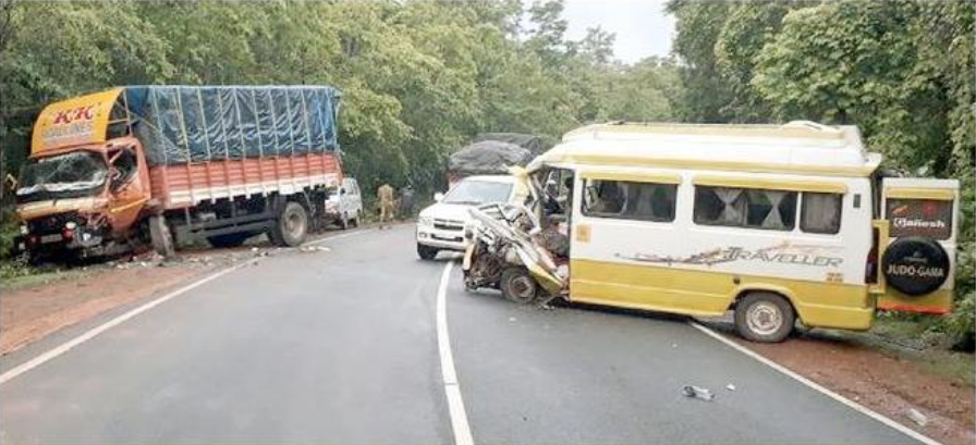 According to the sources 15 members of a family were on their way to Gokarna of Karwar district from Gadag on 'Taveller' vehicle, but the incident took place when they reached Ankola as their vehicle collided with a truck injuring three of them seriously.