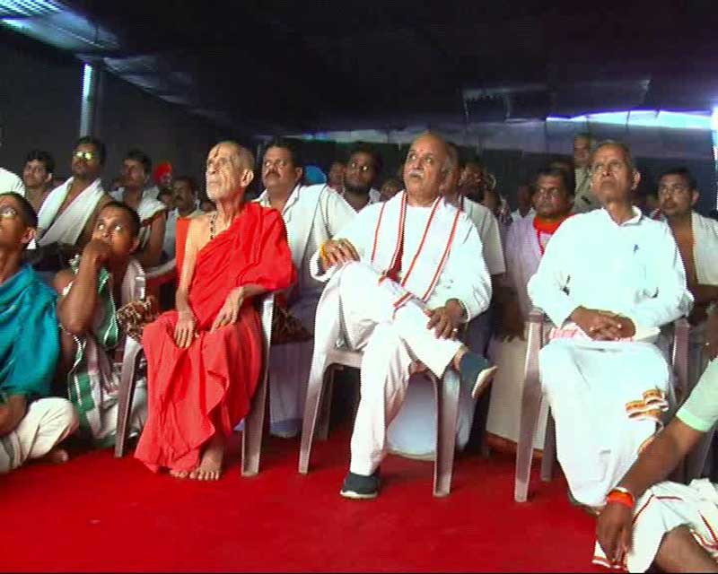 Udupi 25 Nov 2017: International working president of Vishwa Hindu Parishad (VHP) invited wide criticism on Social Media platforms for sitting next to Pejawar Swamiji during a session of Dharma Sansad that is currently taking place in the city with thousands of Religious leaders, Math heads from across the country in attendance.