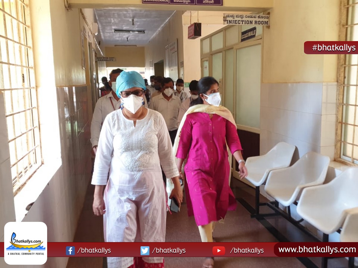 اتر کینرا ضلع پنچایت کی سی ای او ایم پریانگا کا بھٹکل دورہ: سرکاری اسپتال میں کورونا مریضوں کے لیے موجود انتظامات کا لیا جائزہ