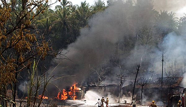 پتور / ساحلی اخبارات مطابق موغلور پوسون تقریباً 25/کلومیٹر دھور اپنگڈی بگلا پیرنے قومی شاہراہ ور آز سکنات ایک ٹینکر پلٹی ماروچان تیکاک اوزو لاگون وھتو ، نتیجہ بتر 6/مانشیں ہیجیت زلون بھسم زاؤن واٹیت انی تین شدید زخمی واٹیت ، ہلاک زالّا چی شناخت یتاں سر زالی ناہی لیکن ٹی وی چینلا طرفین ہیجیت شوبھا ناویں ابولی انی تیجے چڑواچی ہلاکت چی خبر دیؤن وتے اشے ، ہلاکت سلسلات یتاں کوں ہی تعداد حتمی قرار دیؤن گیلی ناہی یہانسبب کہ یتاں کوں اوزو ایزؤن وتے اشے انی بچاؤ چے کام جاری رہاؤنچان مزید لاشو ملوچے امکانات اشے ، ہیں حادثہ چے نتیجہ بتر ہبگا بگلا اسلّی چار گھرے ، دون انگڈیو ایک گیریج انی اومنی کارا کوں بھلی نقصان زاؤن اشے ، ڈرائیور انی کلنیر چی لاشو کوں یتاں سر ہاتات ملّی ناہی بلون خبر اشے ۔