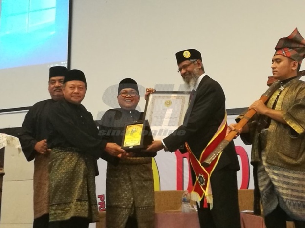 Zakir Naik was handed a sash and songkok by Ibrahim Ali.