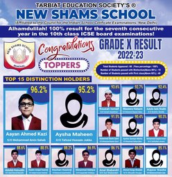 مسلسل ساتویں بار نیو شمس اسکول کی دسویں جماعت کا صد فیصد نتیجہ: 68 طلبہ نے دیا تھا آئی سی ایس ای کا امتحان