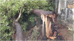 Tree uprooted and destroyed compound walls in bhatkal