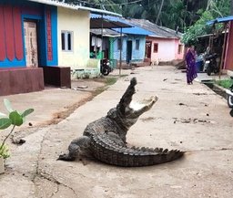 کاروار: یکم جولائی 21 (بھٹکلیس نیوز بیورو) اتر کینرا ضلع کے ڈانڈیلی کے ایک دیہات میں آج صبح رہائشی مکانات کے درمیان سے گزر رہی سڑک پر مگر مچھ کو چلتا دیکھ لوگ ہکا بکا رہ گئے اور فوری طور پر فوریسٹ والوں کو اس کی خبر دی گئی۔ فوریسٹ افسران کے مطابق یہ مگر مچھ کالی ندی سے نکلا تھا اور چلتے ہوئے ا