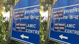 انڈیا اسلامک کلچرل سینٹر کے باہر ہندو سینا نے لگایا جہادی دہشت گرد اسلامک سینٹر کا پوسٹر