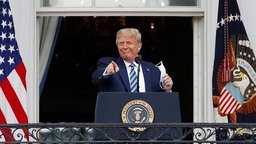 واشنگٹن: امریکی صدر ڈونلڈ ٹرمپ کووِڈ-19 کا شکار ہونے کے بعد ہفتے کے روز پہلی مرتبہ عوام میں بغیر ماسک نمودار ہوئے۔ انھوں نے وائٹ ہاؤس کی بالکونی سے جنوبی لان میں جمع اپنے سیکڑوں حامیوں سے خطاب کیا اور کہا ہے کہ ’’میں نمایاں بہتری محسوس کر رہا ہوں۔‘‘ اپنی مختصر تقریر میں انہوں نے کہ